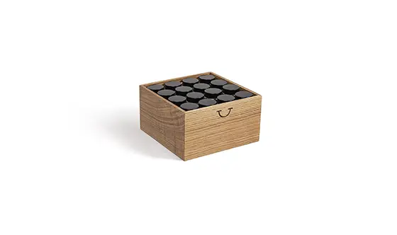 Diese elegante Box aus langlebiger Eiche, ausgestattet mit einem Gläserset, ermöglicht die bequeme Aufbewahrung Ihrer Gewürze in der Küche.