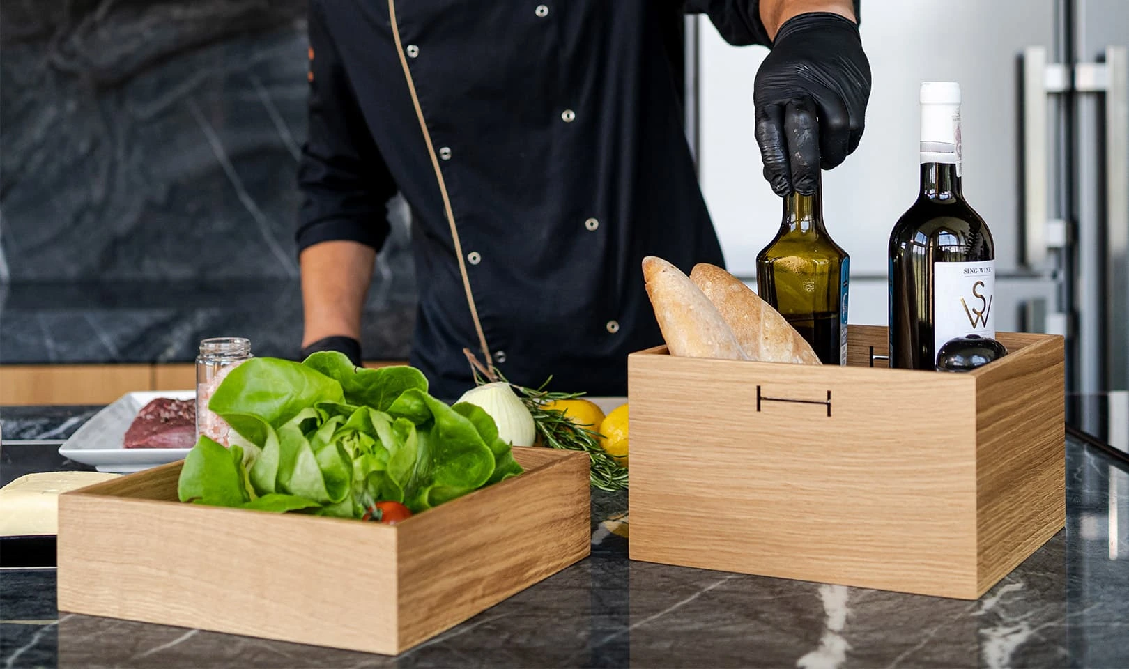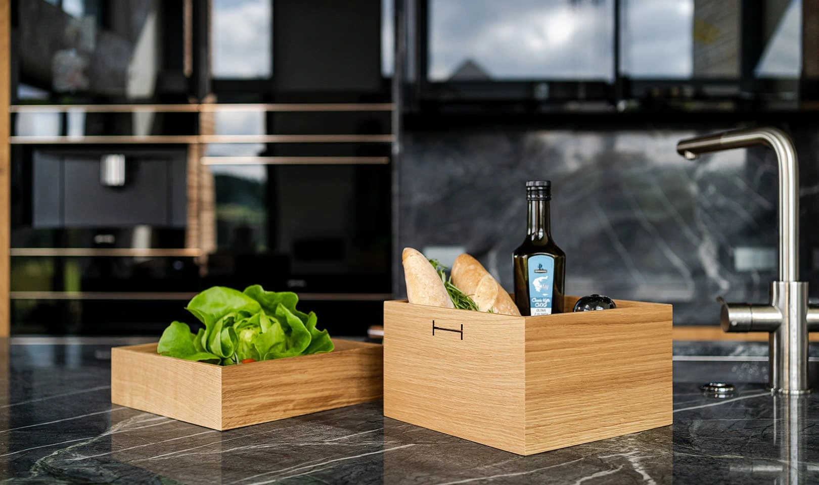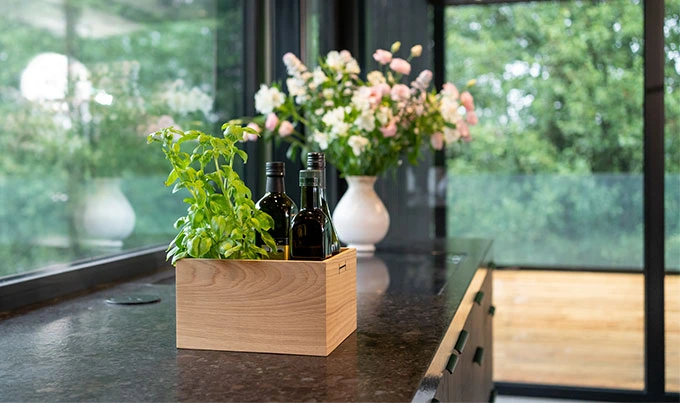 Holzkiste aus massiver Eiche – eleganter Küchen-Organizer