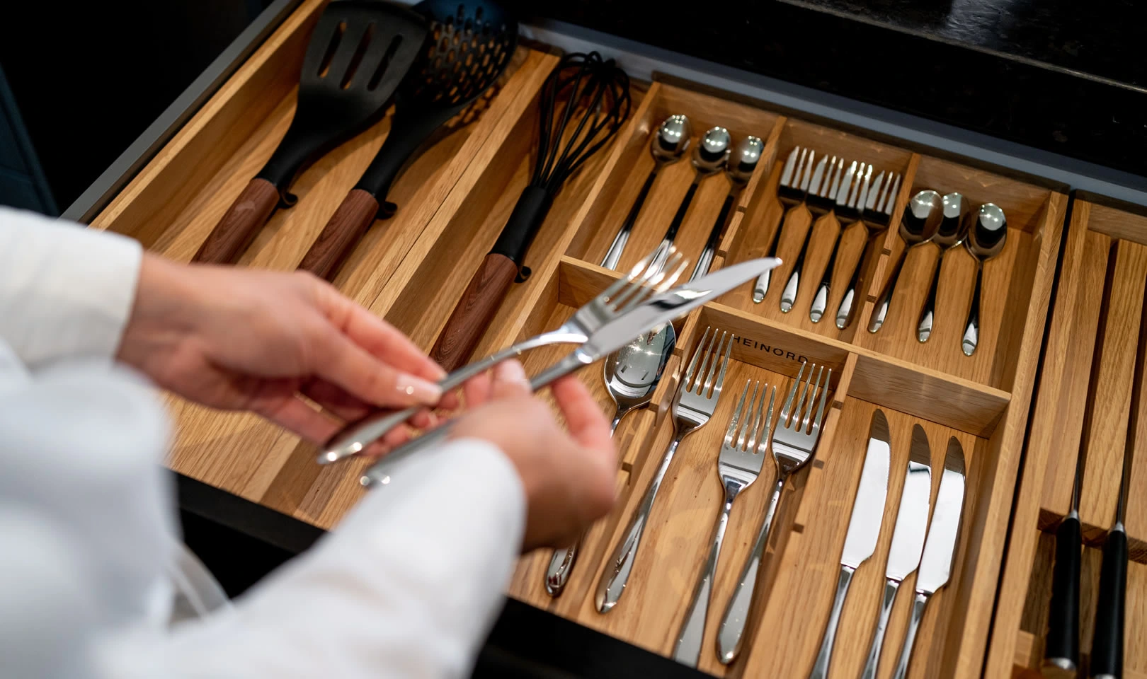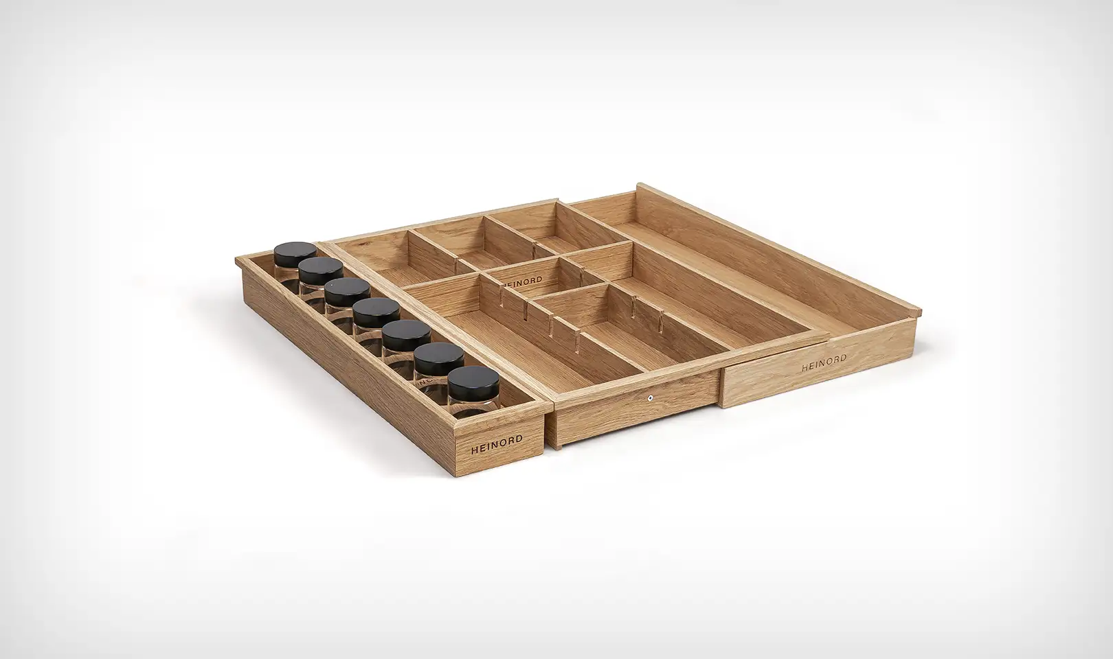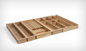 Es gibt viele Küchenschubladen-Organizer, aber natürliches, massives Eichenholz ist ein einzigartiges Material in diesem Segment.