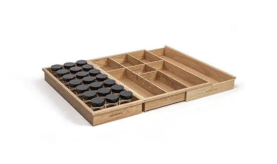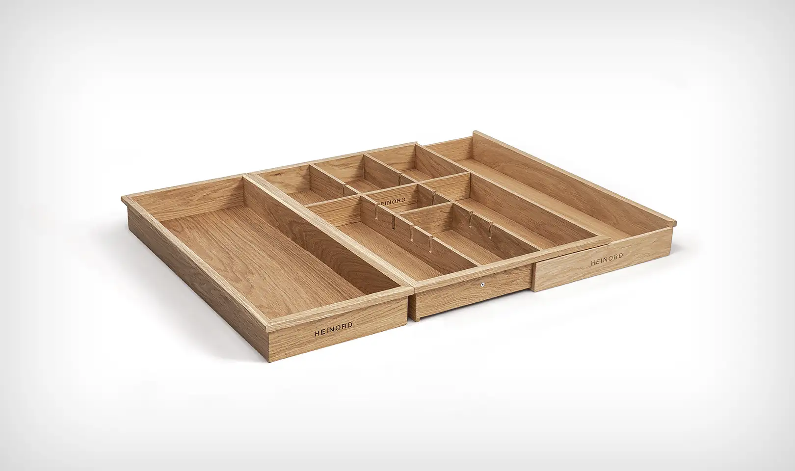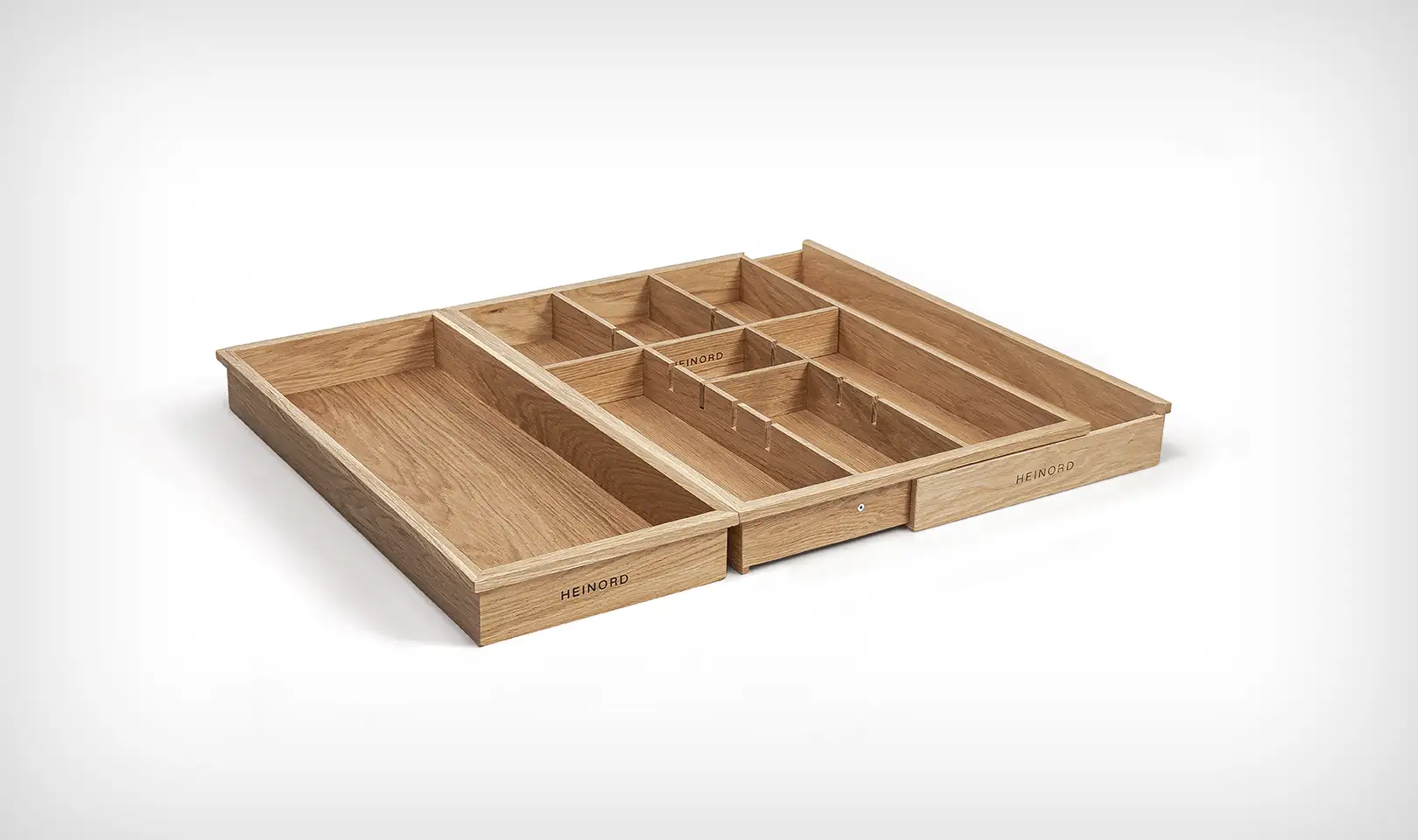 Es gibt viele Küchenschubladen-Organizer, aber natürliches, massives Eichenholz ist ein einzigartiges Material in diesem Segment.