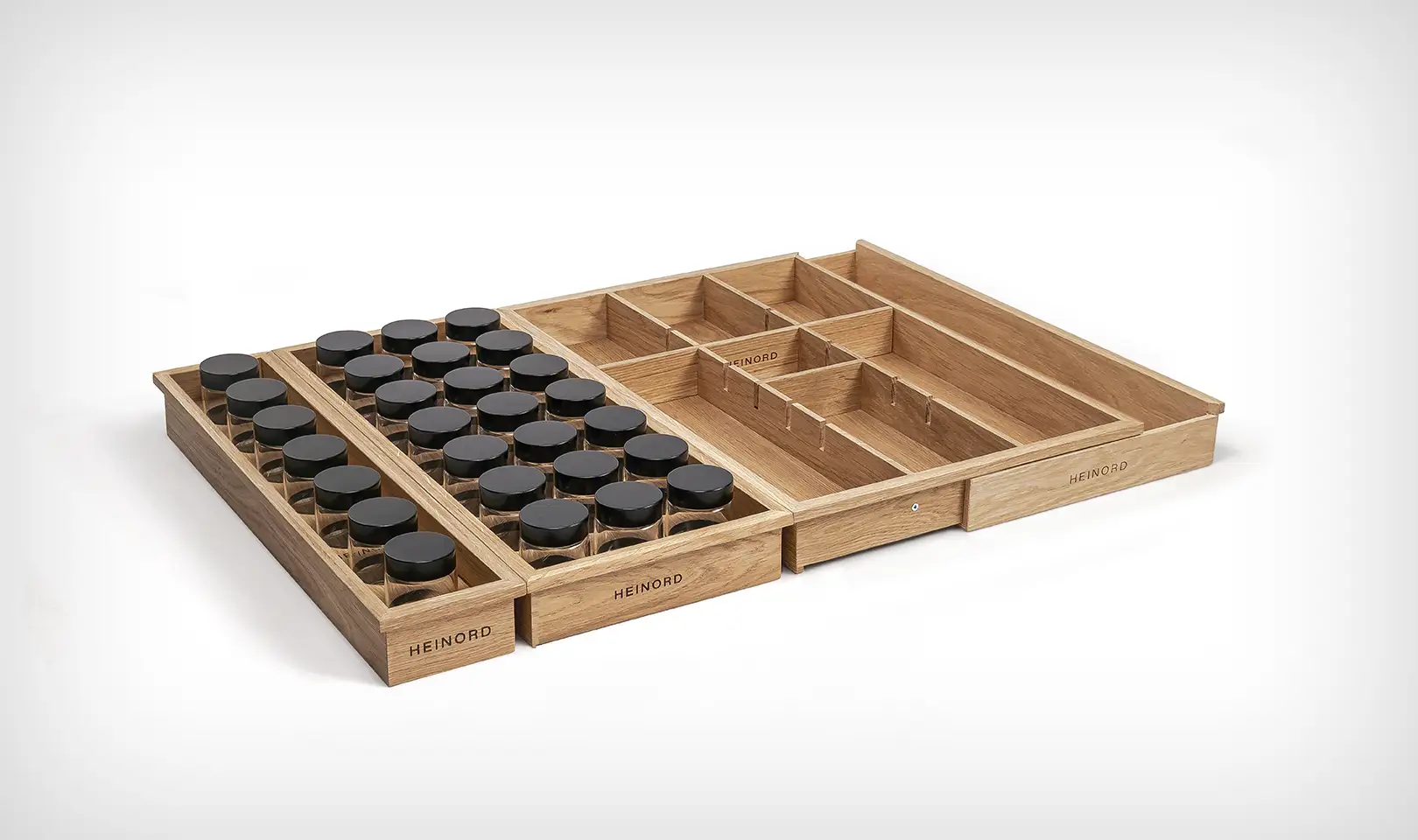 Es gibt viele Küchenschubladen-Organizer, aber natürliches, massives Eichenholz ist ein einzigartiges Material in diesem Segment.
