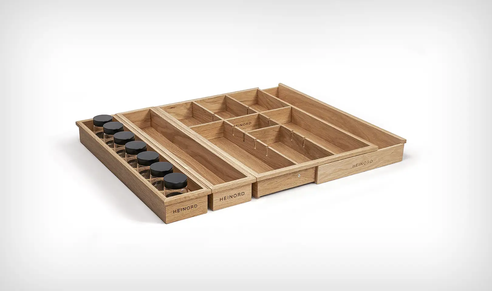 Es gibt viele Küchenschubladen-Organizer, aber natürliches, massives Eichenholz ist ein einzigartiges Material in diesem Segment.
