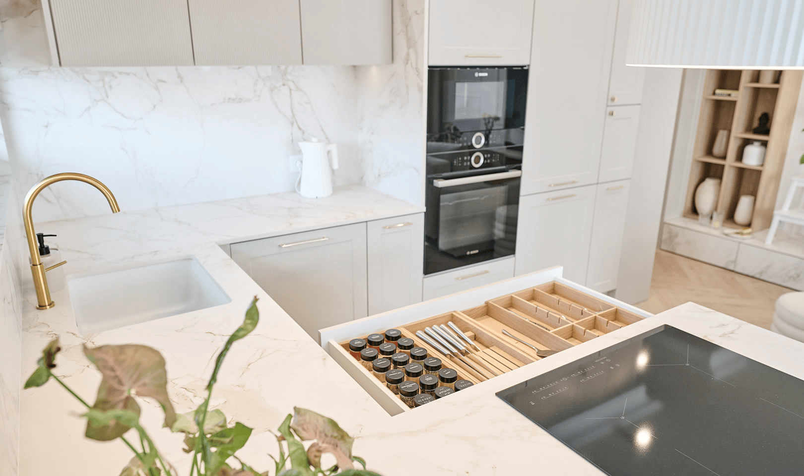 Es gibt viele Küchenschubladen-Organizer, aber natürliches, massives Eichenholz ist ein einzigartiges Material in diesem Segment.